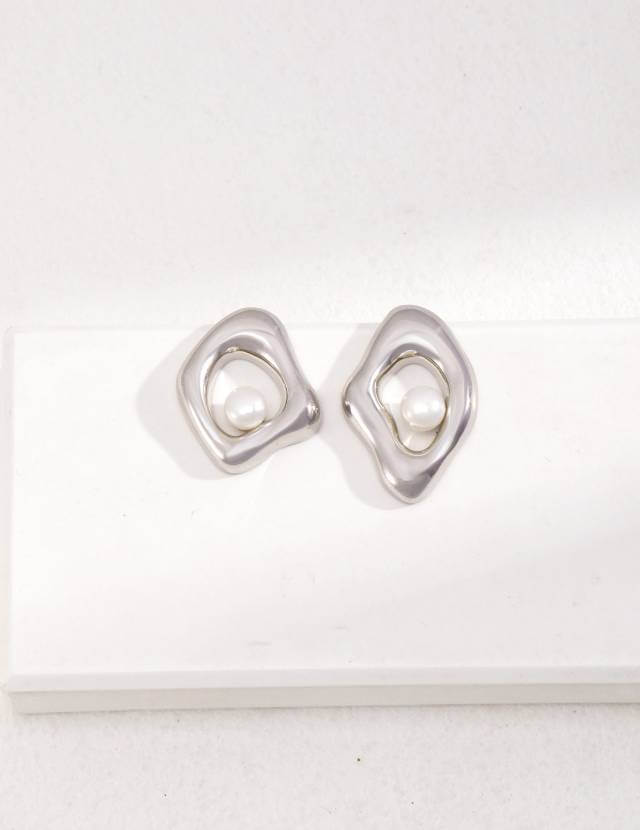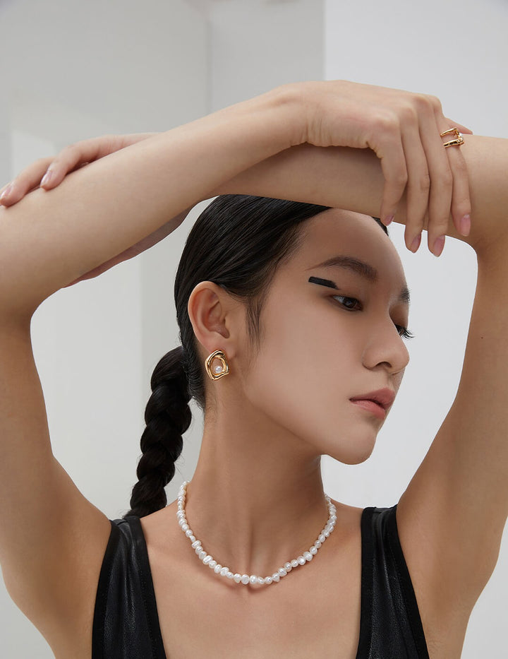 Asymmetric Fluid-Design 925 Sterling Silver & Natural Pearl Earrings – Mismatched AB Pair for Organic Elegance