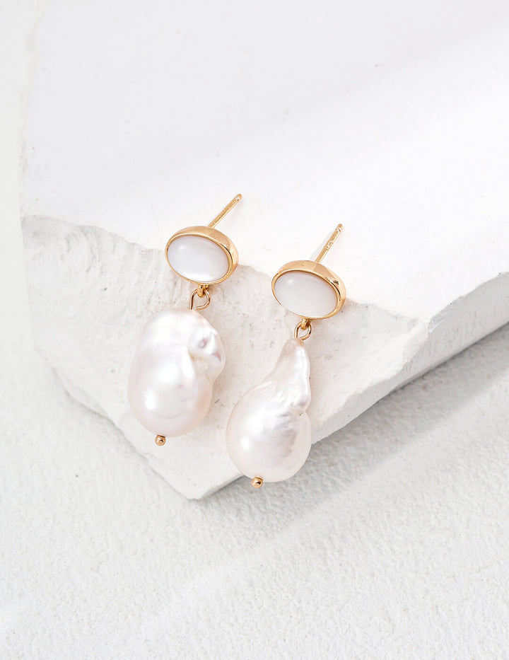 925 Sterling Silver Natural Pearl Shell Earrings – Handmade Boho Statement Jewelry