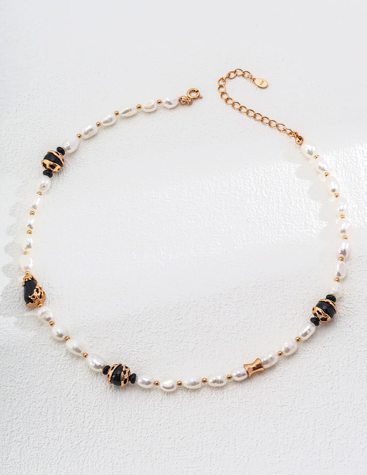 Embrace earthy sophistication with this handcrafted 925 sterling silver necklace/bracelet, harmoniously combining natural freshwater pearls and polished black onyx. Designed for free-spirited souls, its 38cm+6cm adjustable chain ensures versatile styling, while the 9x6mm irregular pearl and facetted onyx beads create a raw yet refined contrast. Perfect for layering with boho outfits or adding subtle mystique to minimalist ensembles, this piece bridges celestial charm and earthly energy.
