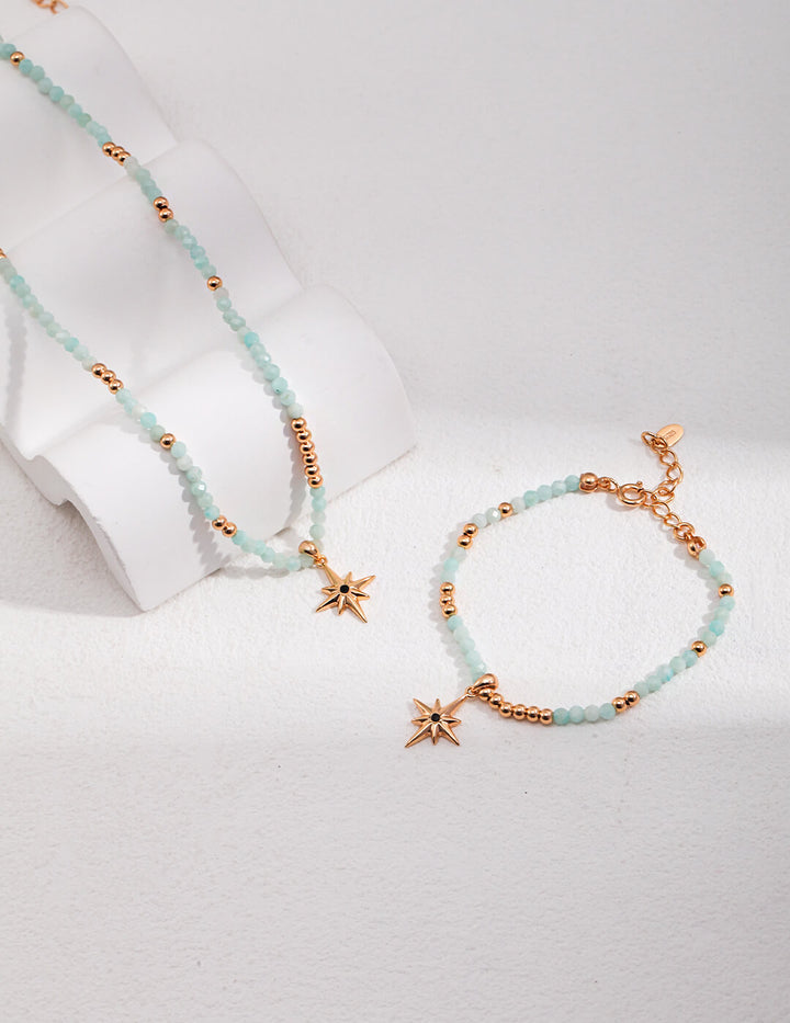 Elevate everyday elegance with our *Stardust Harmony Jewelry Set* – a versatile fusion of earthy sophistication and celestial charm. Handcrafted in hypoallergenic S925 sterling silver with a Retro Gold finish, this adjustable piece features alternating faceted natural quartz jade beads (sourced from Myanmar) and textured silver beads, creating a tactile contrast that catches light effortlessly. The centerpiece is a 22mm star-shaped pendant studded with black zirconia, symbolizing cosmic balance. With a 34.5cm chain + 5.5cm extender, it effortlessly transitions between a necklace and bracelet, adapting to both minimalist outfits and bohemian ensembles. Perfect for layering, gifting, or as a talisman for energy alignment.
