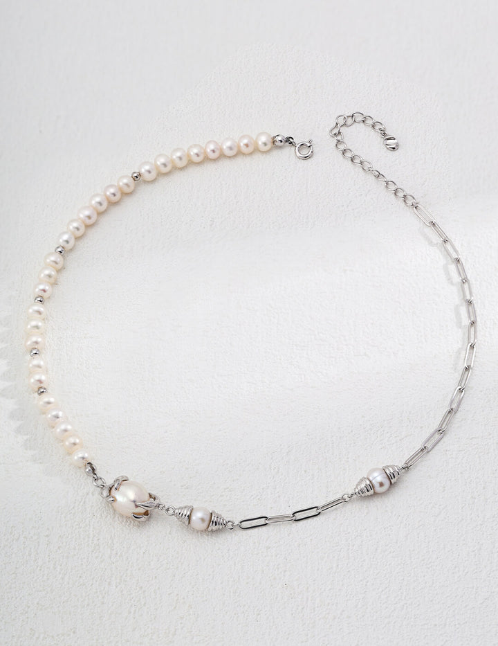 Crafted for lovers of vintage-inspired luxury, this 925 sterling silver necklace combines delicate craftsmanship with nature’s artistry. Featuring natural pearls in three dimensions (6mm, 8mm, and 10x12mm baroque), it offers versatile elegance for both everyday wear and special occasions. Perfect as a gift or personal indulgence, this piece bridges bohemian charm and refined sophistication.