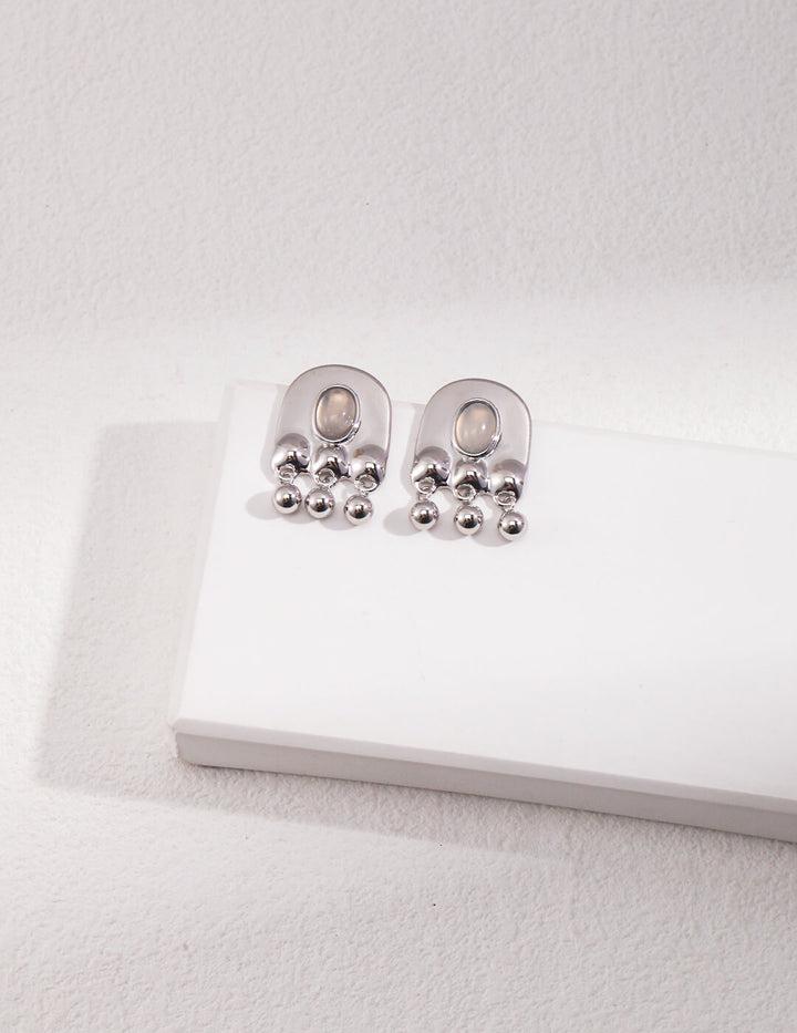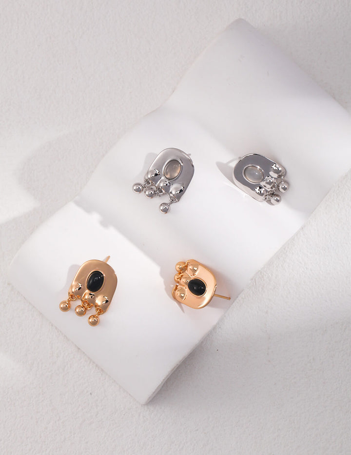 Embrace understated elegance with these fluid-inspired drop earrings, blending minimalist geometry and subtle retro charm. Crafted from premium 925 sterling silver, each piece features a hand-sculpted organic pendant (22mm height) paired with polished synthetic agate or onyx stones (5x7mm), creating a harmonious contrast between raw texture and sleek modernity. Perfect for layering with delicate studs or standing alone as a statement piece, these earrings transcend trends, complementing both bohemian flowy dresses and tailored minimalist wardrobes.
