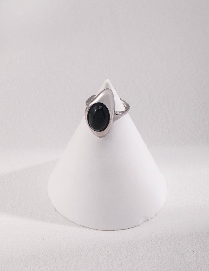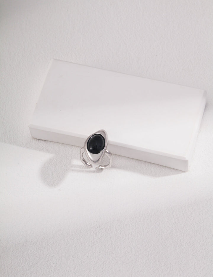 Hand-Carved 925 Sterling Silver & Black Agate Artisan Ring – Adjustable Heirloom Jewelry with Lost-Wax Craftsmanship.