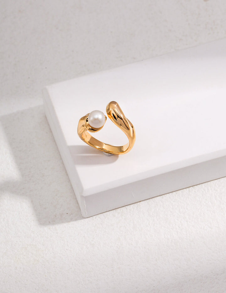 Embrace nature's artistry with our *Celestial Flow Ring* – a masterful fusion of液态流动银 (liquid-inspired silver) and luminous freshwater pearls. Handcrafted in hypoallergenic S925 sterling silver, this ring features a free-form "liquid metal" band that appears to cascade around a 6mm natural pearl, evoking the enchanting harmony of stardust embracing the moon. Available in Platinum Gold (modern brilliance) and Vintage Gold (antique charm), its 13mm width and adjustable open design ensure a universal fit (size 11-15). Perfect for bohemian weddings, minimalist fashion, or symbolic self-pampering gifts.