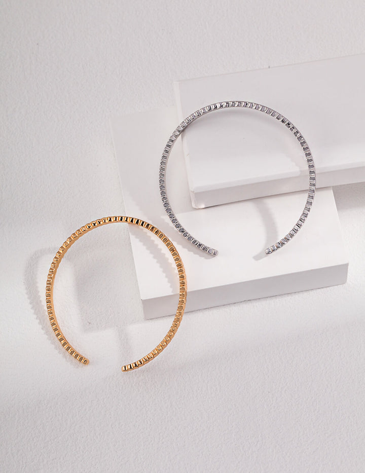 Elevate your wrist game with this timeless 925 sterling silver bangle, designed for versatility and modern sophistication. Featuring a 3mm slim band and dual-tone finishes (Platinum Gold or Vintage Gold), this piece seamlessly transitions from office wear to evening outfits, embodying minimalist luxury. Crafted for layering or standalone wear, this bangle complements both delicate chains and bold statement pieces, making it a staple for curated jewelry collections.
