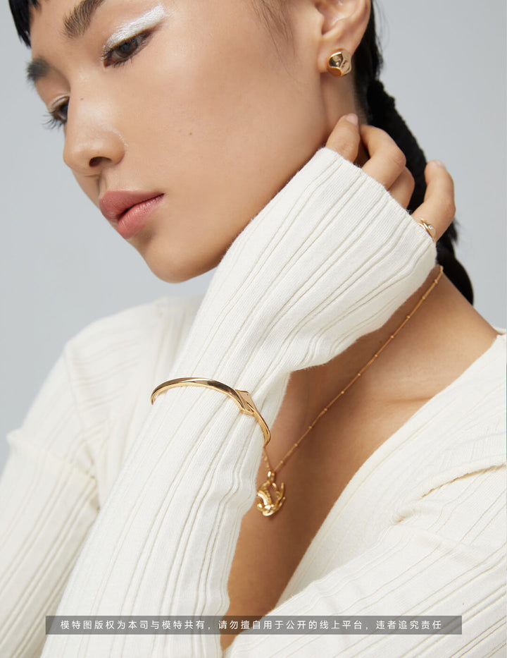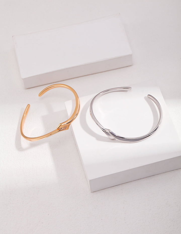 Crafted for the avant-garde minimalist, this sterling silver bangle redefines simplicity with bold, three-dimensional geometry. Inspired by contemporary sculpture, its fluid curves and sharp angles create a striking contrast, adapting seamlessly to both casual and formal ensembles. Whether stacked with delicate chains or worn solo, this piece embodies "quiet luxury" – a statement of refined rebellion for urban trendsetters.