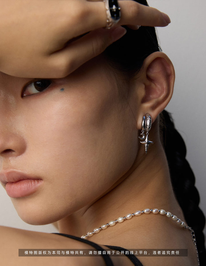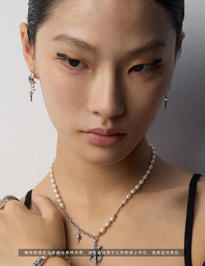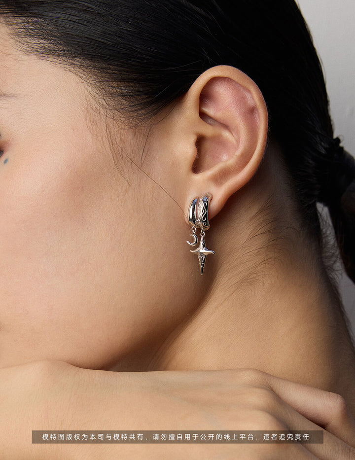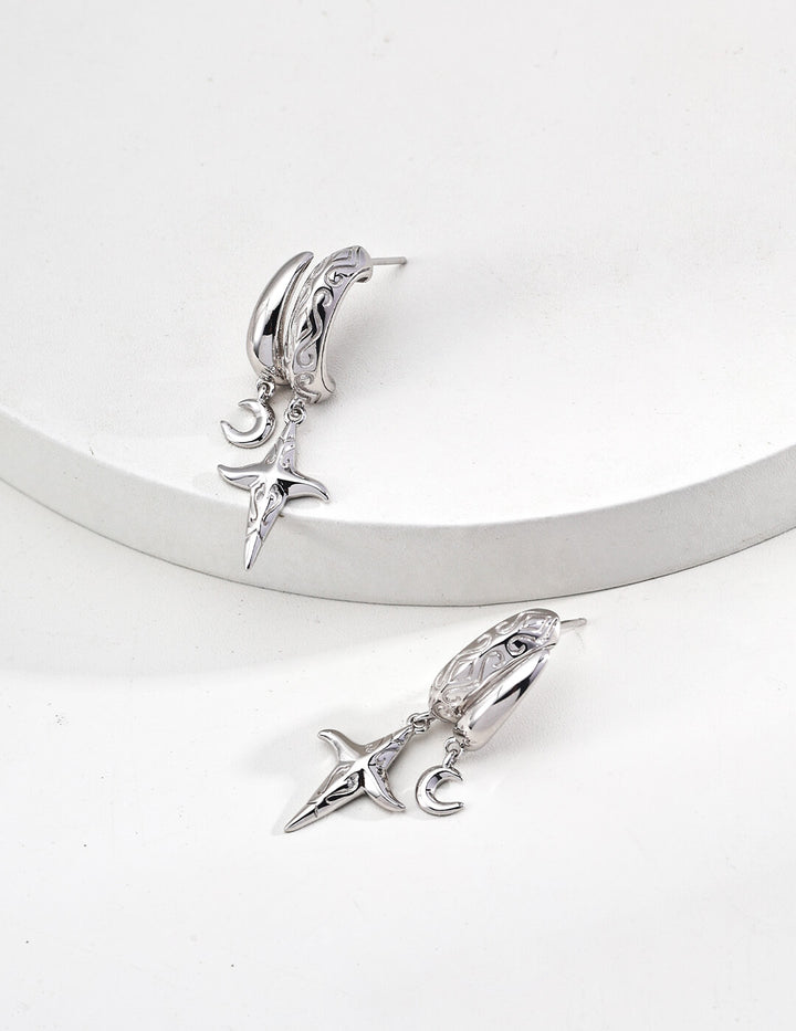 Tarot Alchemy: Asymmetric Moon & Star Earring + Necklace Set in S925 Sterling Silver – Mystic Bohemian Layering Jewelry