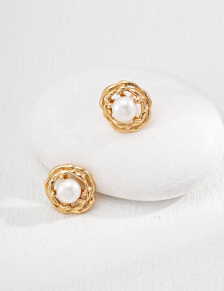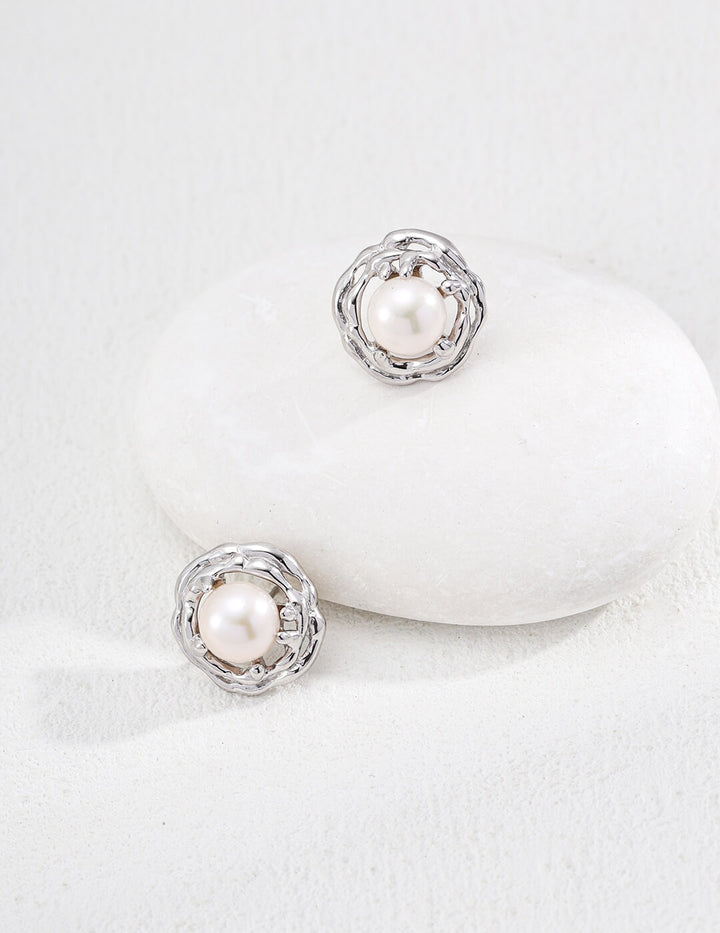 Inspired by the quiet sophistication of heirloom jewelry, these handcrafted earrings blend 9mm natural pearls with 925 sterling silver in a delicately aged finish. The 2cm-wide curved design mimics organic textures, evoking a balance of raw beauty and refined artistry – perfect for elevating both daytime ensembles and evening attire. A tribute to slow fashion, these earrings are designed to age gracefully, their pearls deepening in luster and silver developing a personalized patina over time.