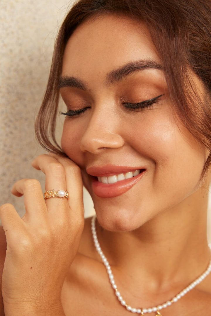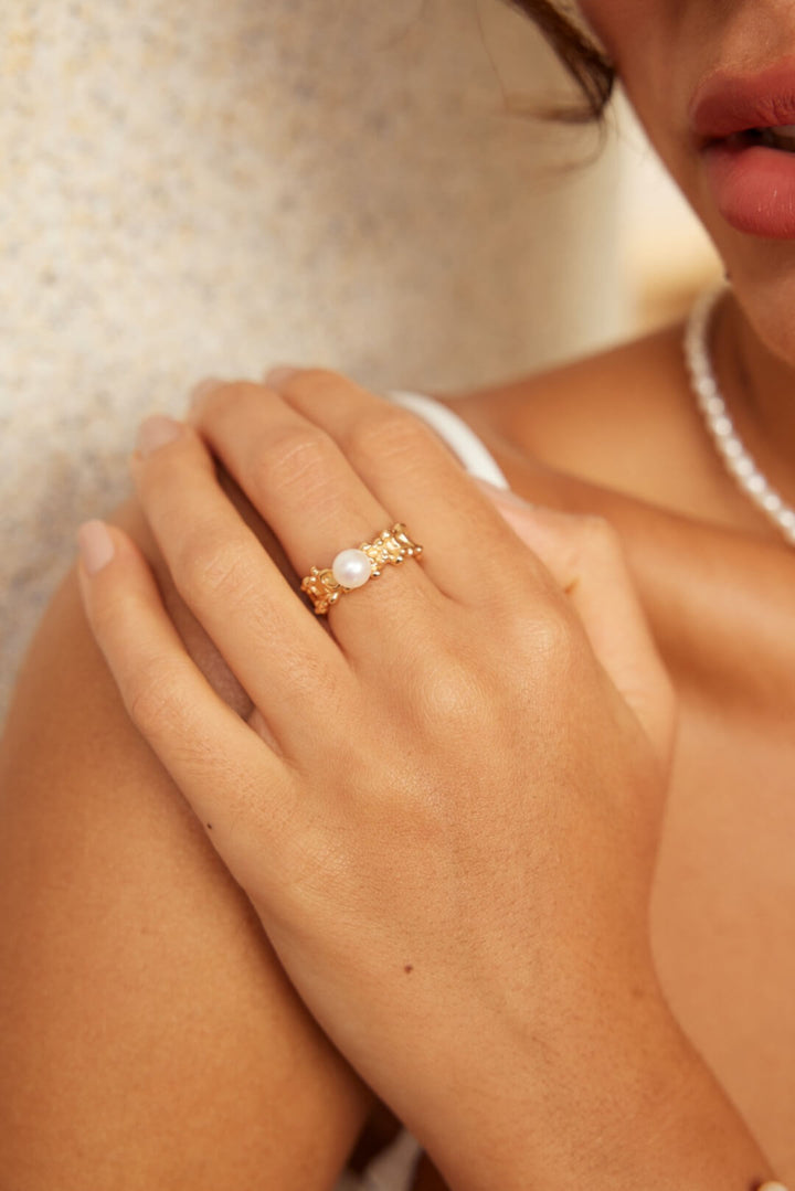 Wave-Inspired 925 Sterling Silver & Natural Pearl Adjustable Ring – Oceanic Elegance in Silver/Retro Gold