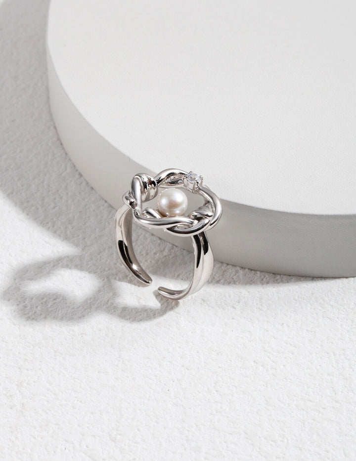 Willow-Inspired Adjustable 925 Silver Ring/Necklace – Nature-Infused Minimalist Jewelry with Natural Pearl & Cubic Zirconia